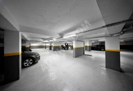 يوجد موقف سيارات مغلق في المبنى. المصعد يصل إلى طابق الموقف ...