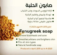 صابونة الحلبه " محارب طبيعي لحبّ الشباب وَ تصبغات البشره ".