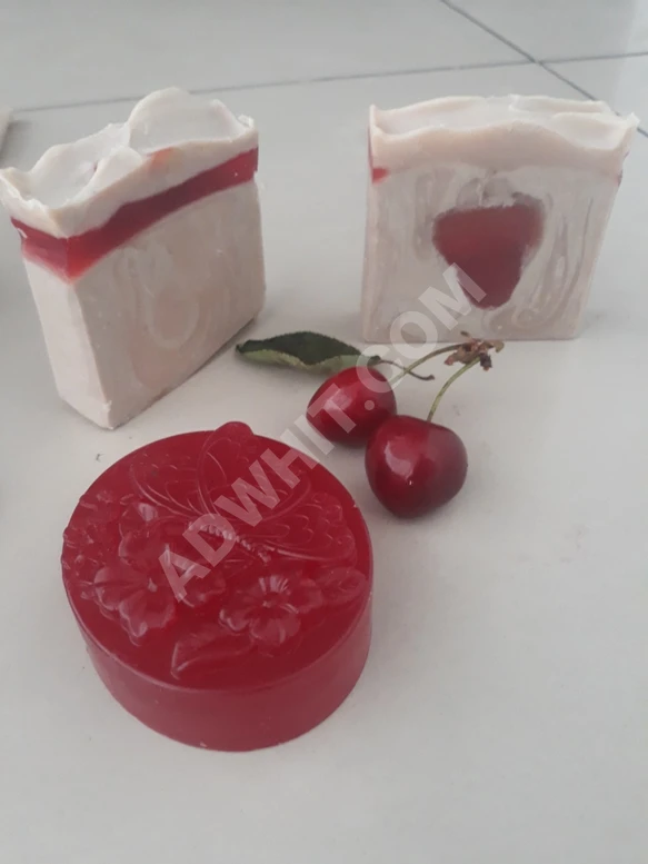 صابون الكرز ( طبيعي + جليسيرين ) - صناعة تركية على الطريقة الباردة بشكل يدوي بحت.