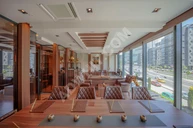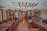 الطاولة: طاولة اجتماعات كبيرة بتصميم عصري، مزودة بـ5 فتحات مدمجة للكابلات.