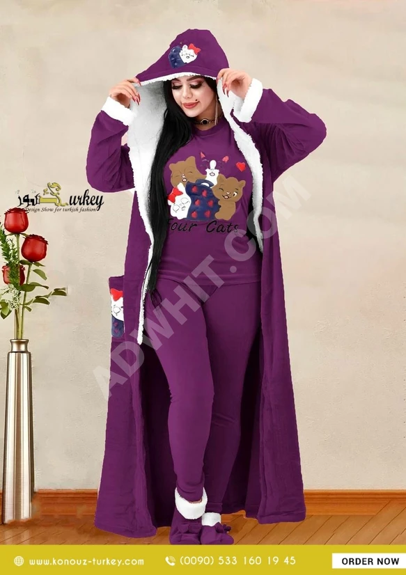 طقم 5 قطع مخمل سميك تطريز بنطلون و بلوزة و كيمون و ألشين و كمر ????