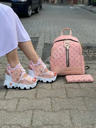 طقم حذاء مع حقيبة وجزدان نسائي