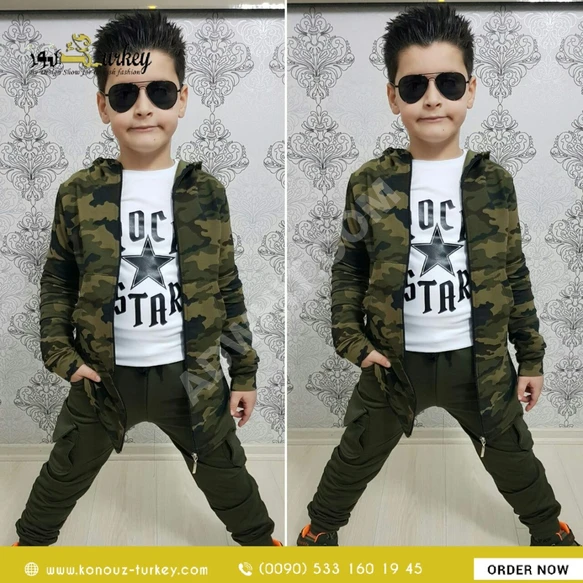 طقم صبياني بنطال مقلم وقميص وكرافة