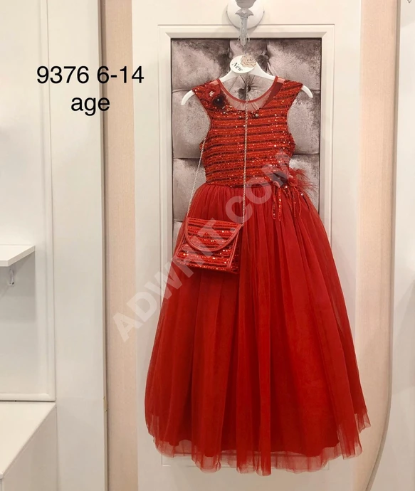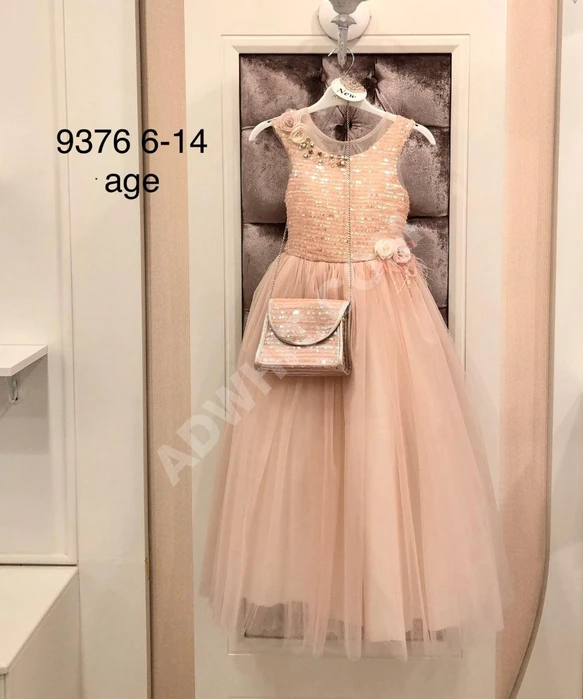 فستان بناتي طويل مع شنطة