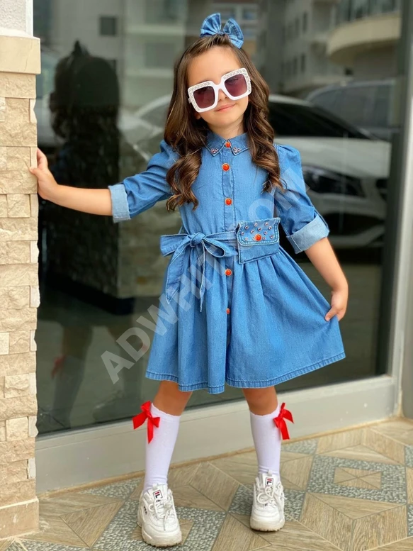 فستان بناتي مع شنطة وجراب واكسسوار للشغر