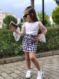 طقم صبياني بنطال مقلم وقميص وكرافة