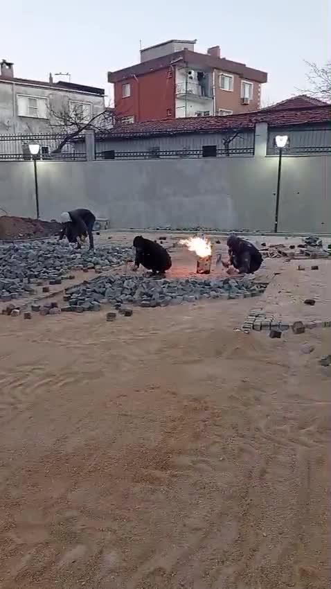 تستمر أعمال تركيب أرضيات مكعب Begonit في Mersin من قبل فريق الحرفي Halil لأعمال رصف الباركيه.