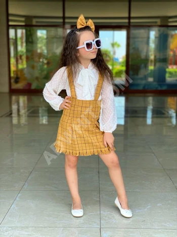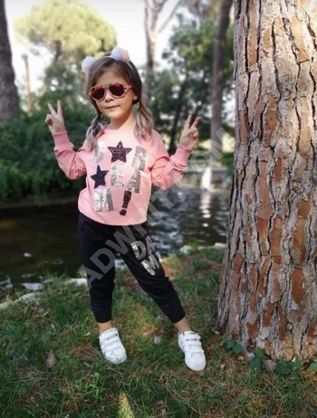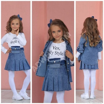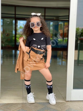 طقم بناتي ثلاث قطع مع ربطة شعر