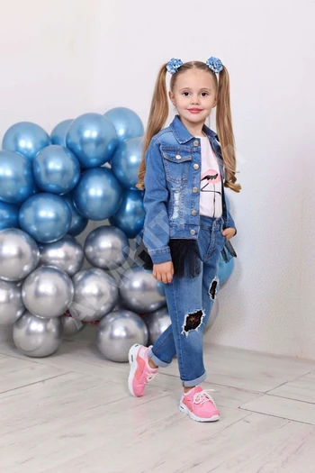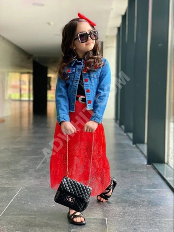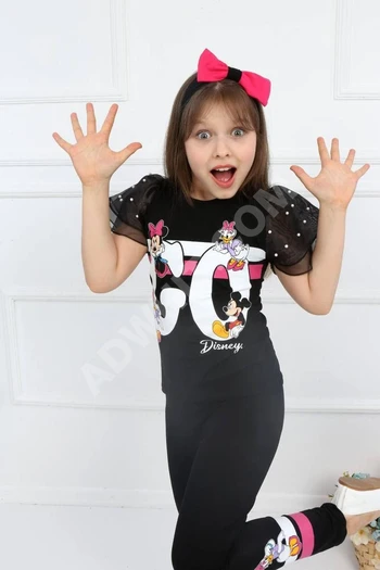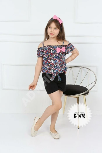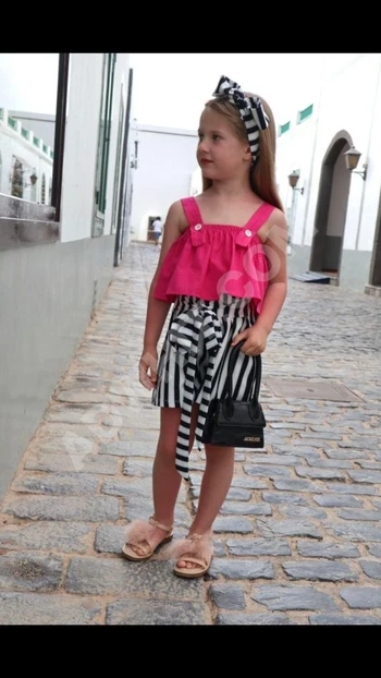 طقم بناتي ثلاث قطع مع ربطة شعر