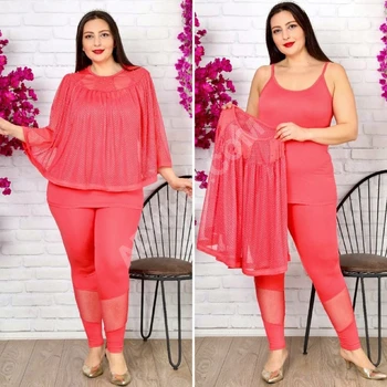 بيجاما نسائية ثلاث قطع بمقاسات كبيرة