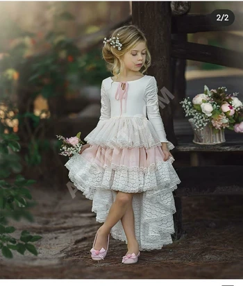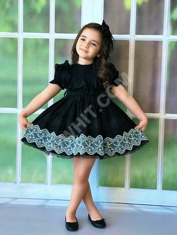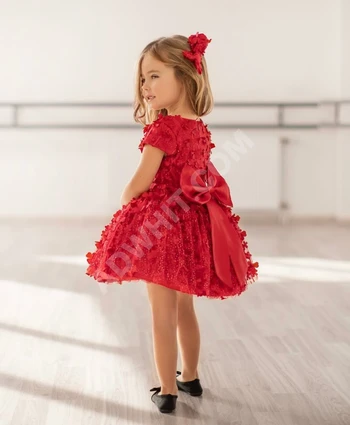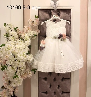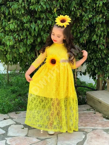 فستان بناتي دانتيل تقيل مع حزام واكسسوار للشعر
