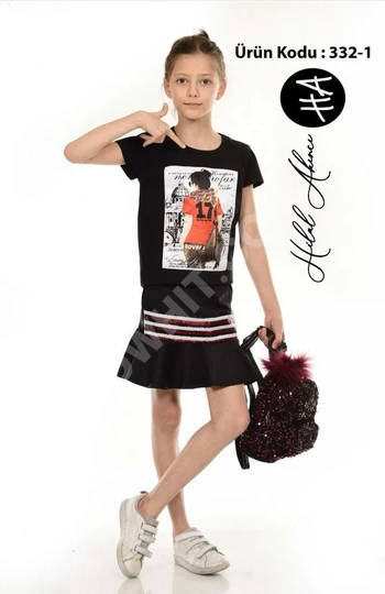 طقم بناتي جينز ثلاث قطع المبيع بالجملة صناعة تركية