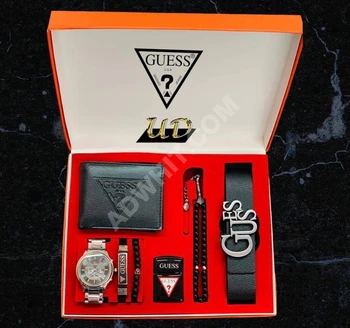 طقم اكسسوار رجالي ساعة + جزدان + كرافة + حزام