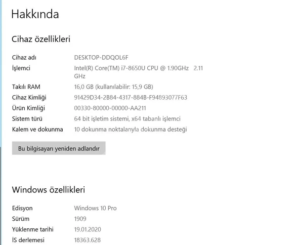 thinkpad X1 carbon i7 vpro 8.nesil 8650U 16g 256ssd dokunmatik ekran fhd ingilizce klavye 26 ay lenovo garantisi