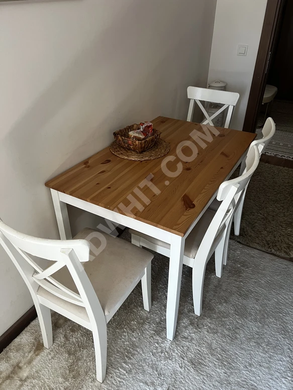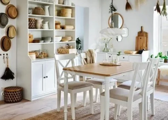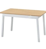 PINNTORP açık kahverengi-beyaz 125x75 cm mutfak masasıI/ NGOLF beyaz-Hallarp bej döşemeli ahşap sandalye