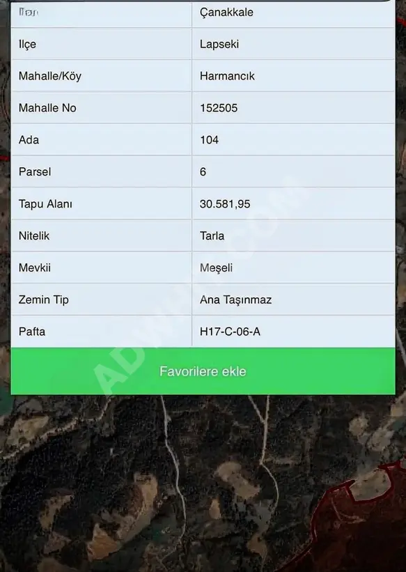 AR-KON DAN LAPSEKİ BEYÇAYIRDA ÇAPLI MUVAFAKATNAMELİ UYGUN FİYATA