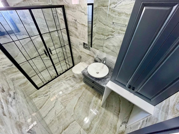 Çamsan 10mm parquet floors + ceramic floors in wet areas