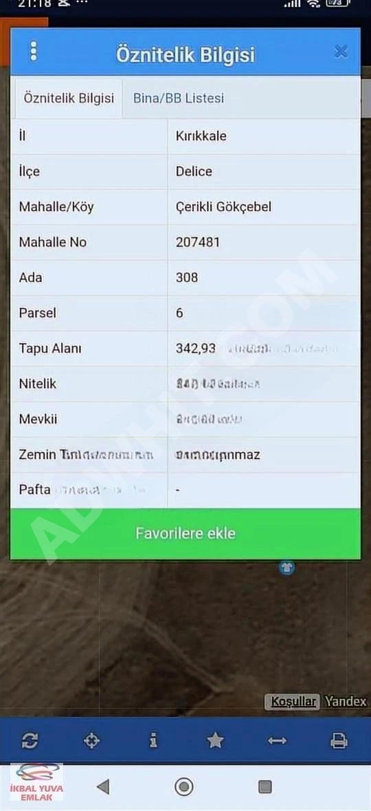 A plot of land with an area of 342 square meters, classified as land, in KIRIKKALE DELİCE ÇERİKLİ GÖKÇEBEL