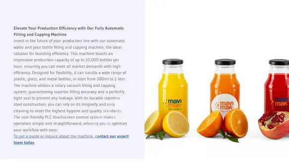 An advanced automatic machine designed for filling and sealing plastic, glass, and metal bottles for a wide range of liquids such as mineral water, juices, and beverages.