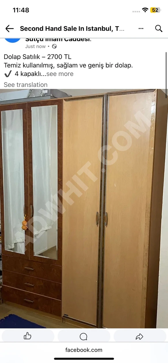 Temiz kullanılmış, sağlam ve geniş bir dolap.