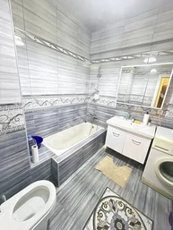 A furnished two-bedroom apartment with a living room, as shown in the pictures