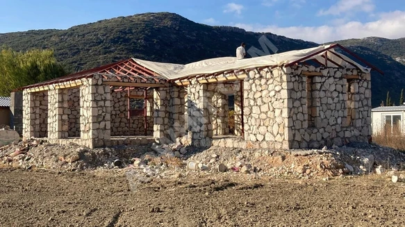 An excellent stone villa with all its foundations ready, featuring a fireplace and a swimming pool, situated in the heart of nature in Fethiye Seydikemer.