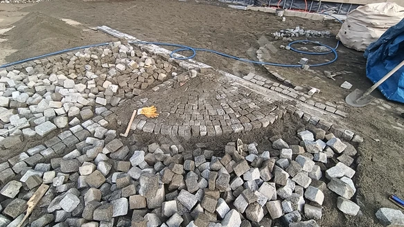 ➡️ Doğal taş, begonit ve granit küptaş zemin uygulama
