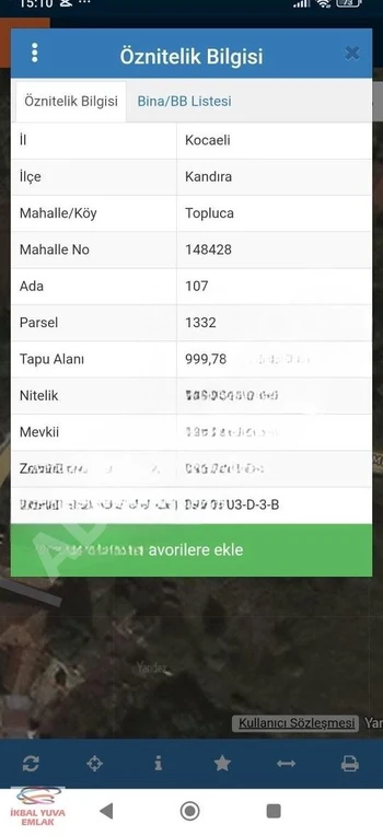 KANDIRA TOPLUCA'DA%40 İMARLI SATILIK ARSA
