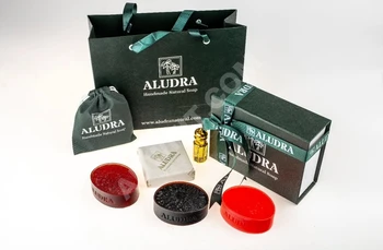Lüks hediye seti: El yapımı doğal sabun ve yarım tola parfüm şişesi.