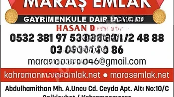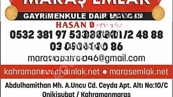 MARAŞ EMLAK'TAN İMRAN KILIÇ KÖPRÜSÜ İLERİSİ SATILIK TEK TAPU TRL