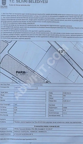 SİLİVRİ ORTAKÖY MOLA İSATANBUL'A KOMŞU 2.5 KAT VİLLA İMARLI ARSA