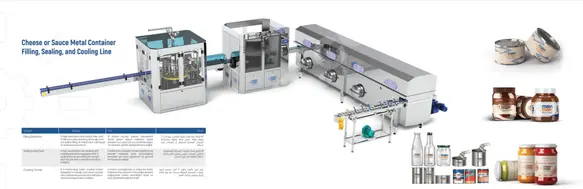 Peynir, sos, reçel ve sıvı veya yarı sıvı gıda ürünlerinin metal kutulara dolumu ve muhafazası için özel olarak tasarlanmış entegre bir üretim hattıdır.