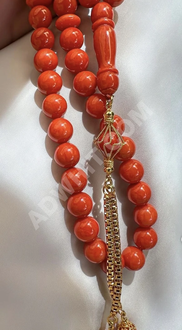 Yeşil renk ile işlenmiş siyah yüsr tesbih