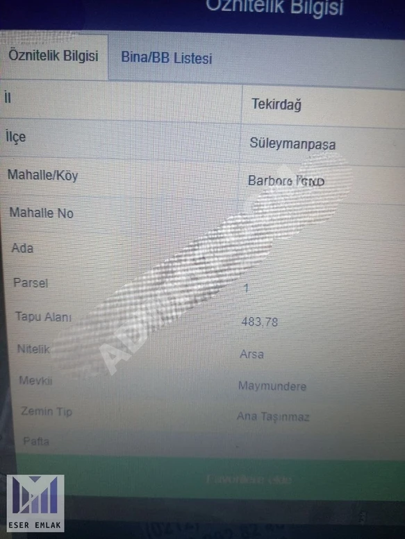 TEKİRDAĞ SÜLEYMANPAŞA BARBAROS MAHALLESİNDE 483M'2 3 KAT KONUT İMARLI ARSA