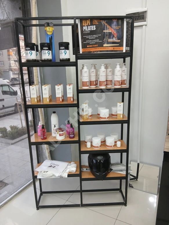 3 lü tezgah 3  saç koltuğu ,22 yıkama koltuğu 2 bekleme koltuğu  buzdolabı çamaşır makınası,2 saç 1 kaş tezgahı tekli 2 saç koltuğu 1 kaş koltuğu 2 TV  havluluk laboratuar fırçalar fön makinaları makyaj malzemeleri,