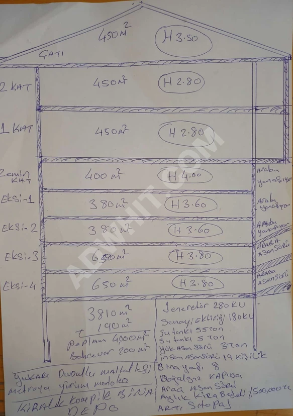 ZEMİN KAT 400M2 YÜKSEKLİK 4 MTL